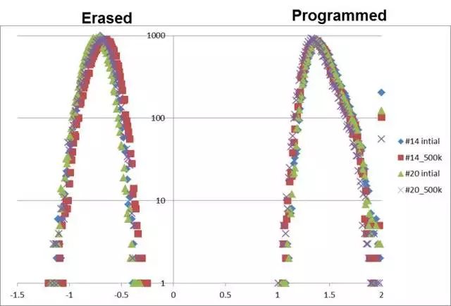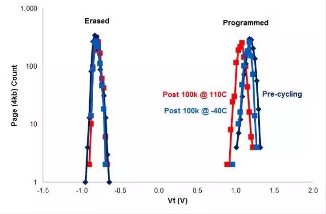 • Endurance passes 500K cycles at 85°C w/o ECC. Vt window > 1.2V after 500K cycling.