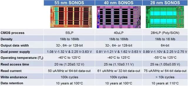 ?SONOS in mass production from 0.35um to 55nm, engineering samples available on 40uLP & 28HLP