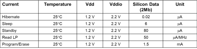 • Lowest power: 7.5V program/erase voltage, low-current FN/FN program/erase operations.