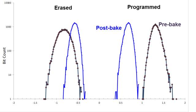 • Retention passes accelerated 48-hour bake at 250°C with > 0.7 V window left.