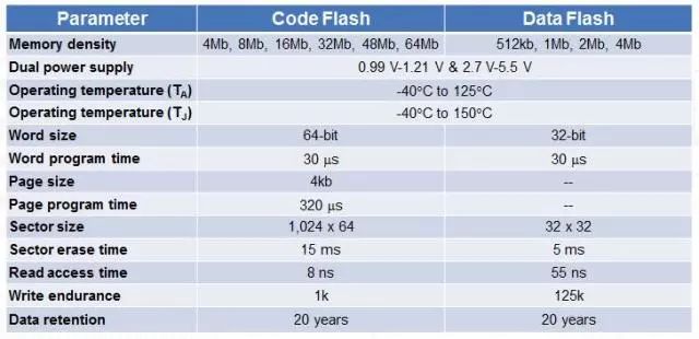 • Former Spansion’s eNVM technology for automotive MCUs.