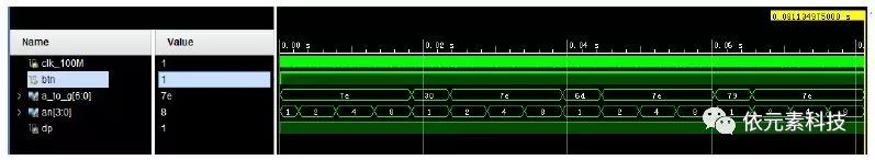 硬件配置完成后,我們就可以在EGO1平臺上來驗證我們的設(shè)計啦,這個設(shè)計中我們將EGO1開發(fā)板的撥碼開關(guān)SW0作為clr的輸入,同時用數(shù)碼管顯示計數(shù)結(jié)果。將SW0拉高后,計數(shù)結(jié)果就直接顯示在數(shù)碼管上面了。好啦,各位小伙伴們大家看看我們的電路計算正確么?