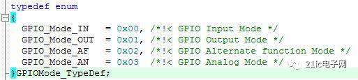 再點擊GPIOMode_TypeDef,查詢?nèi)缦拢?/p>