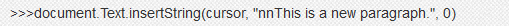 執(zhí)行上面代碼后,你應該可以看到文檔中多出一行文本。加入斷行符可以向文檔中加入換行: