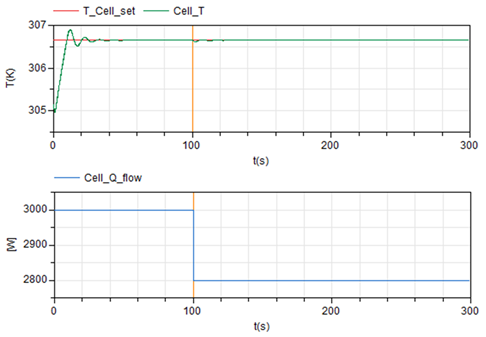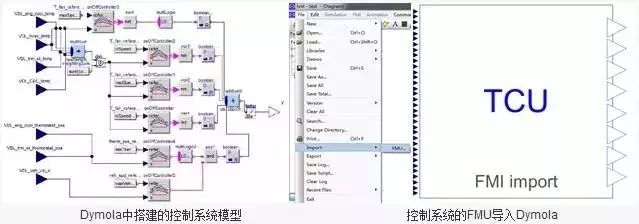 Dymola還可搭建控制算法,同時其也可以通過Simulink接口,調(diào)用Matlab/Simulink軟件的控制算法,實現(xiàn)熱管理系統(tǒng)控制模型與仿真物理模型之間的聯(lián)合仿真,用于控制策略的設(shè)計、驗證,使工程師更好的設(shè)計熱管理系統(tǒng)模型。
