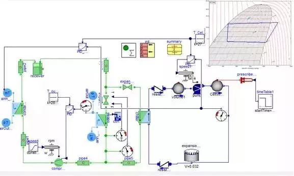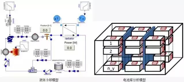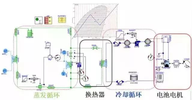 為了解決電池?zé)峁芾碇?,流體系統(tǒng)之間復(fù)雜的耦合系,可以采用Dymola軟件的蒸發(fā)循環(huán)庫、液冷庫、電池庫等搭建一維仿真模型。去模擬整個模型系統(tǒng),分析不同系統(tǒng)之間的耦合關(guān)系,從而實現(xiàn)對復(fù)雜系統(tǒng)的化控制。