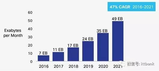 圖1:移動數(shù)據(jù)流量持續(xù)增長。(來源:思科)