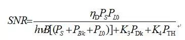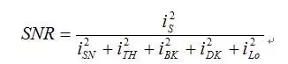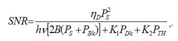 式中,是信號電流的均方值;是散彈噪聲電流的均方值;是熱噪聲電流的均方值;是背景噪聲電流的均方值;是暗電流的均方值;是本振電流的均方值。