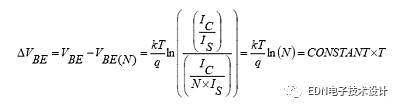 公式(2)顯示了許多并聯(lián)晶體管的基極-發(fā)射極的VBE(N)值。