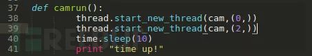 當(dāng)使用兩個攝像頭的時候,就會用到如圖的函數(shù),這里用到了最簡單的多線程thread,(PS:本人能力有限,暫時還沒法理解threading這個自定義的多線程方法,),可以在運行cam()的時候,使得cam(0),和cam(1)的基本同時運行