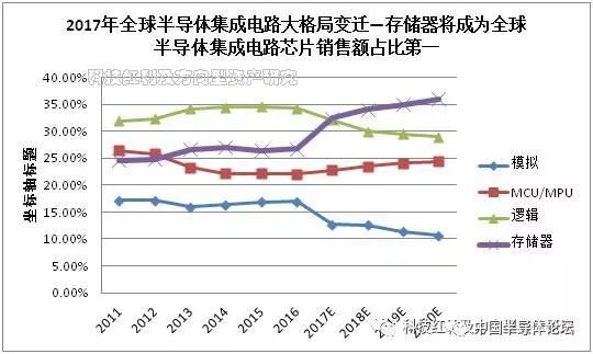 圖:2017年全球半導(dǎo)體集成電路大格局變遷—存儲(chǔ)器銷(xiāo)售額占比全球第一