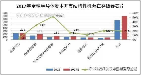 圖:2017年全球半導(dǎo)體資本開(kāi)支結(jié)構(gòu)性機(jī)會(huì)在于存儲(chǔ)器芯片