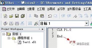 好了…… ,我們把 SETB P1.0 這條匯編語句用keil軟件編譯生成Hex文件,然后用圖3所示的軟件和圖1所示的硬件(用串口連接電腦)下載到我們已經(jīng)做好的電路板上的單片機(jī)芯片里去(圖省事的話建議直接買個(gè)開發(fā)板),然后接通電源……什么?燈不亮?這就對(duì)了,因?yàn)槲覀儗戇M(jìn)去的指令就是讓P10輸出高電平,燈當(dāng)然不亮,要是亮就錯(cuò)了。所以要將keil編緝區(qū)的內(nèi)容改為CLR P1.0,重新編譯生成Hex文件,重新下載,接電,好,燈亮了。因?yàn)槲覀儗懭氲腍ex就是讓P10輸出低電平的指令。這樣我們看到,硬件電路的連線沒有做任何改變,只要改變寫入單片機(jī)中的內(nèi)容,就能改變電路的輸出效果。