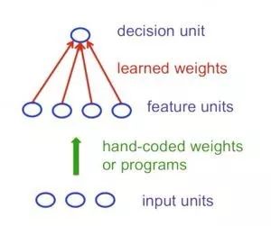 感知機可以稱為第一代的神經(jīng)網(wǎng)絡(luò),主要包括輸入的多個特征單元(人工定義或程序?qū)ふ遥?,中間由學習權(quán)重連接,最后由決策單元輸出。典型的感知機單元遵循前饋模型,輸入通過權(quán)重處理后直接連接到輸出單元上。