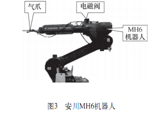選擇工業(yè)機(jī)器人末端執(zhí)行器應(yīng)考慮夾取對(duì)象的形狀與質(zhì)量,本實(shí)例選擇氣動(dòng)手爪,如圖4所示,型號(hào)為HDS-20Y,控制手爪動(dòng)作的電磁閥安裝在MH6機(jī)器人本體上。若工件質(zhì)量大,可選用液壓手爪。