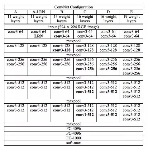 如圖所示,VGG Net包含了連續(xù)的卷積層,卷積層后緊接著聚積層。聚積層負(fù)責(zé)讓各個(gè)層變得更窄。在這篇由組內(nèi)研究人員共同完成的論文中,他們提出了各種類型的網(wǎng)絡(luò),這些網(wǎng)絡(luò)架構(gòu)的主要差異是深度不同。