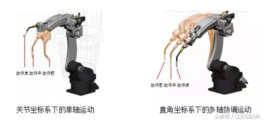 不同的機器人坐標系功能等同,即機器人在關(guān)節(jié)坐標系下完成的動作,同樣可在直角坐標系下實現(xiàn)。