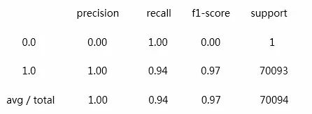 由于此次我們的驗證數(shù)據(jù)集只有1條正常流量,所以我們看到FN為0 。我們更關(guān)心惡意流量被識別為正常流量的情況(漏報),我們看到這里漏報達到4226條,如果要計算漏報率,可以使用以下指標