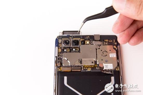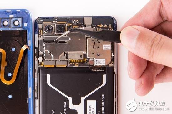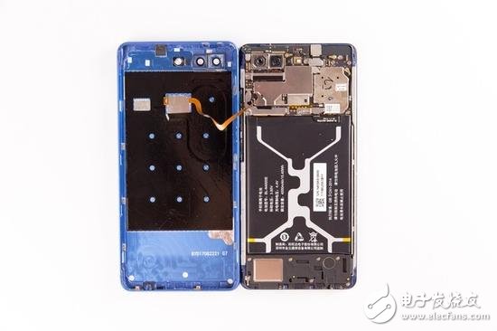 在主板背部,防滾架一直延伸到聽筒的位置,不僅用于提升整機(jī)的結(jié)構(gòu)強(qiáng)度,也是為了給后面的屏幕做支撐??梢钥闯?,前置攝像頭以及聽筒都已經(jīng)做到了極限靠上的位置,所以想要再壓榨正面空余的空間給屏幕,那就只能是在硬件創(chuàng)新上下功夫了,然而這顯然是不具備核心技術(shù)廠商的軟肋所在,所以我們才很難看到真正能將手機(jī)的額頭或者下巴取消的廠商,能消除一邊便已經(jīng)算是領(lǐng)先了。