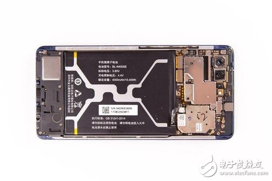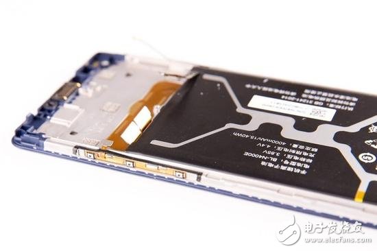 再來看看機(jī)身,采用三段式結(jié)構(gòu),主板面積相對較小,從而給電池留出了較大的空間,使其容量可以達(dá)到4000mAh。