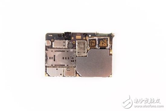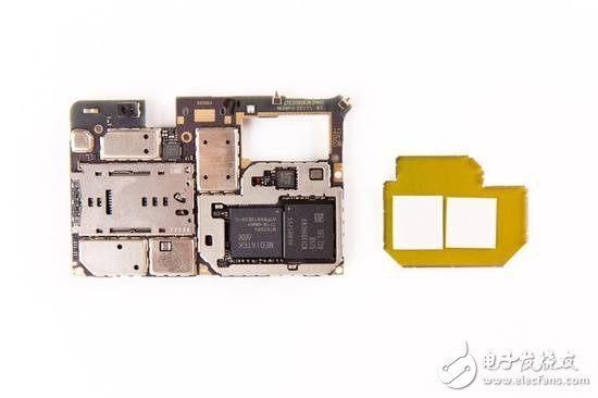 隨后掀開主板正面的屏蔽罩,便可以看到聯(lián)發(fā)科P30芯片了,代號MT6758V,旁邊則是三星6GB LPDDR4X內(nèi)存,推測64GB閃存應(yīng)該是疊層封裝在它下面的。兩個(gè)芯片表面都覆蓋有散熱硅脂。