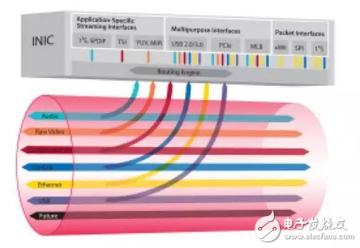 在MOST網(wǎng)絡(luò)框架內(nèi)會保留帶寬給各個信道或需要傳輸?shù)臄?shù)據(jù)流。通過控制信道對源端設(shè)備和宿端設(shè)備進行設(shè)置,設(shè)置一旦完成數(shù)據(jù)就可以自動輸入到一個特定的位置或從中移除。既不存在需要應(yīng)付開銷的問題,也可將媒體流輕松傳輸?shù)饺我庖粋€將處理該內(nèi)容的設(shè)備。而主處理器沒有任何負(fù)荷。事實上,某些應(yīng)用根本無需使用處理器。例如,后座耳機放大器就只由一個INIC和一個帶有功率級的D/A轉(zhuǎn)換器構(gòu)成。所有控制均可以遠程進行。而針對那些同時需要數(shù)據(jù)包和數(shù)據(jù)流的應(yīng)用,MOST150標(biāo)準(zhǔn)網(wǎng)絡(luò)提供了一個專用的MOST以太網(wǎng)分組(MEP)信道,大大簡化了在系統(tǒng)中集成以太網(wǎng)和MOST兩種技術(shù)的難度。