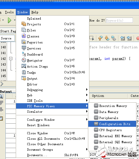 1,打開MPLAB X IDE 在菜單欄中 點擊Window->PIC Memory Veiws->Configuration bits