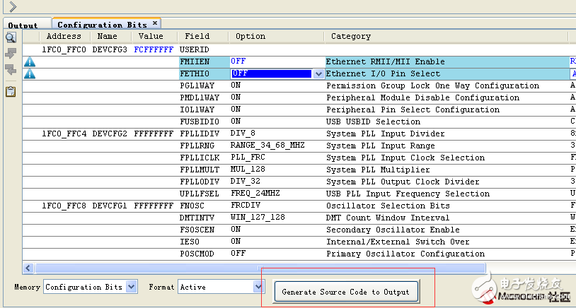 3,配置完成后 點擊 Genarate Source Code to Output 產(chǎn)生配置源代碼。