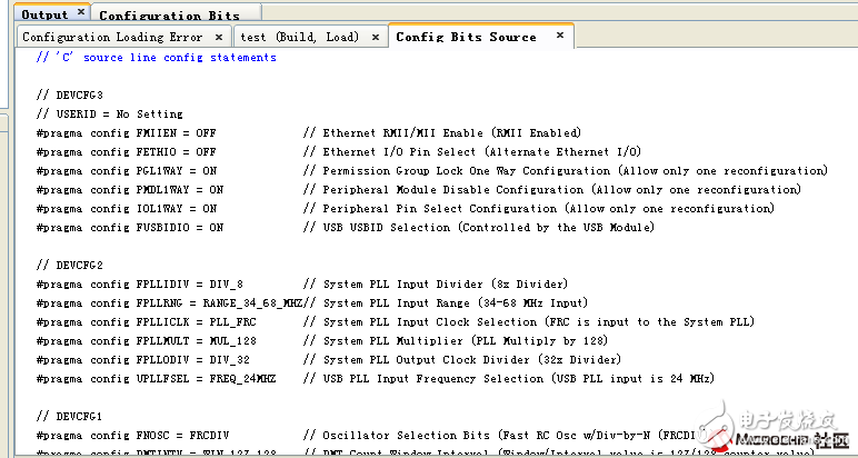 MPLAB X IDE 如果要配置的話必須在代碼中寫出配置。