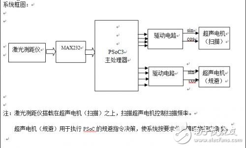 我們通過激光測距儀來實(shí)時(shí)檢測測量范圍內(nèi)障礙物的距離數(shù)據(jù)并通過RS232傳輸端口傳送到PSoC中進(jìn)行相應(yīng)處理,我們選用了新一代的超聲電機(jī)作為作動器來實(shí)現(xiàn)激光測距儀10度角的環(huán)境范圍掃描,因其具有快速的響應(yīng)能力、良好的斷電自鎖能力且不受電磁干擾的影響等一系列優(yōu)點(diǎn),固在航空航天的領(lǐng)域有較大的應(yīng)用前景。