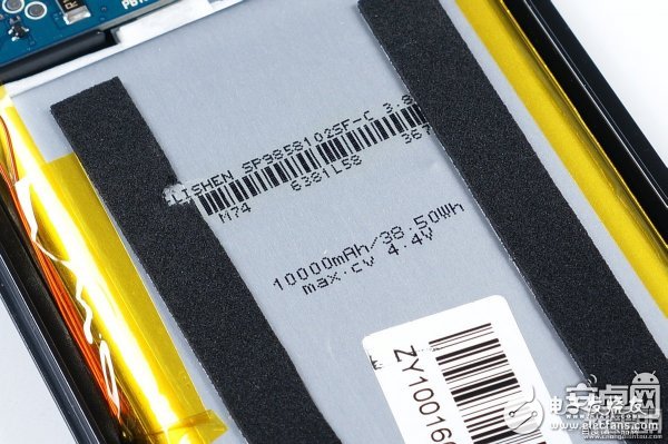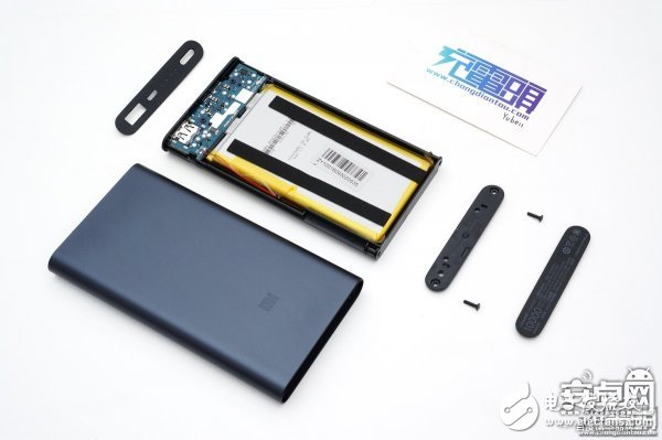 小米移動電源2 裝配結(jié)構(gòu)與以往金屬殼體的幾款小米移動電源幾乎一樣,我們先把頂欄膠面板撬出。