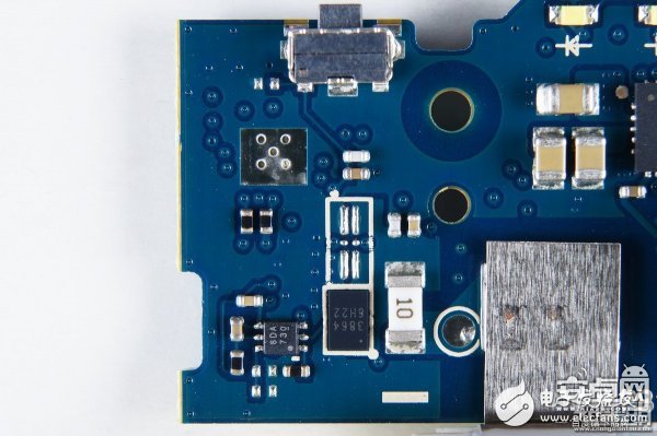 ucsp封裝MOS旁邊是電池管理IC,他們搭配組成保護(hù)板,白色保險絲作最后一道安全防線。