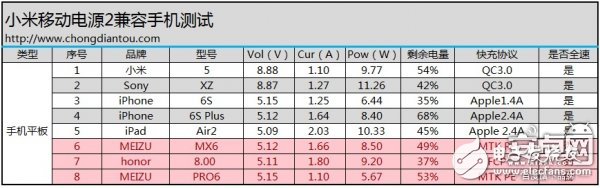 在兼容性測試?yán)?,小米移動電? 對測試的幾臺高通標(biāo)準(zhǔn)的快充設(shè)備都可以良好支持,順利握手QC2.0快充規(guī)格,幾個蘋果設(shè)備亦可以正常識別達(dá)到全速。mtkPE與FCP設(shè)備則不支持,只可以運行在5V模式下。