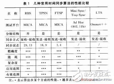 無線傳感器網(wǎng)絡(luò)的最常見的幾種同步算法的性能比較如表1所列。