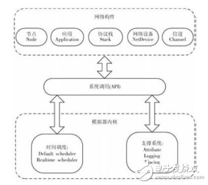 NS-3的網(wǎng)絡(luò)模擬支持系統(tǒng)包括:Attribute系統(tǒng)。Logging系統(tǒng)和Tracing系統(tǒng)。由于廣泛汲取了其他網(wǎng)絡(luò)仿真工具的經(jīng)驗(yàn)和技術(shù),NS-3的內(nèi)核在可量測(cè)性。可擴(kuò)展性。模塊化。支持仿真與現(xiàn)實(shí)融合等方面具有極大優(yōu)勢(shì)。NS-3的網(wǎng)絡(luò)構(gòu)件包括:節(jié)點(diǎn)(Node)。應(yīng)用(Application)。協(xié)議棧(Protocol Stack)。網(wǎng)絡(luò)設(shè)備(Net Device)。信道(Channel)。拓?fù)渖善鳎℉elper)等。網(wǎng)絡(luò)構(gòu)件是對(duì)真實(shí)網(wǎng)絡(luò)的各個(gè)部分的抽象,具有低耦合高內(nèi)聚特點(diǎn),NS-3通過(guò)低層次的抽象,使得仿真效果盡可能反映真實(shí)網(wǎng)絡(luò)的性能。