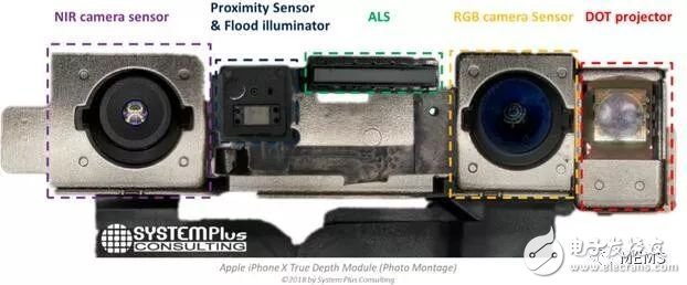 Eloy認(rèn)為,iPhone X中真正突破性的進(jìn)步在于光學(xué)系統(tǒng)。正如EE Times之前報(bào)道的那樣,iPhone X的近紅外3D攝像頭(TrueDepth)是一款集成了五個(gè)子模塊的復(fù)雜組合體。