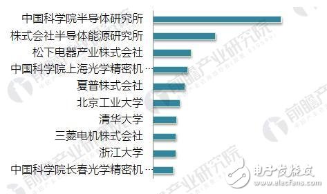 截至2018年2月中國半導(dǎo)體激光行業(yè)相關(guān)專利申請人TOP 10