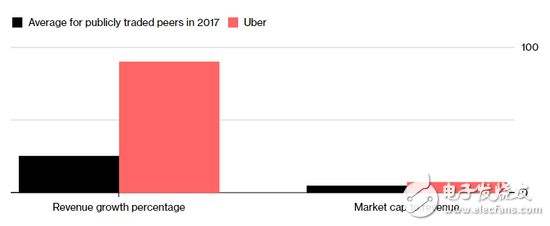但讓投資者心安的是,Uber的銷量增長速度簡直無人可敵。2017年第四季度,Uber的營收達23億美元,全年增長率約為90%,十分強勁。這一增長速度超過了大多數擁有類似估值的科技公司。去年,美國只有一家類似規(guī)模的科技公司可與之媲美,那就是美光科技。