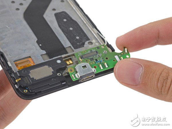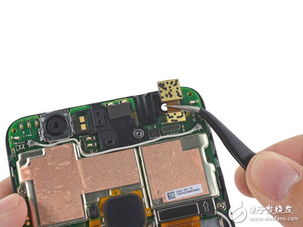 Nexus 6P的揚聲器就位于上面這塊子板的一側(cè),與Nexus 6的設(shè)計相仿。