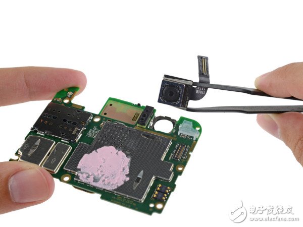 接下來就是取下主板,在這里并未采用粘合劑固定,所以很輕松。不過值得一提的是,后置攝像頭也一起跟了下來。