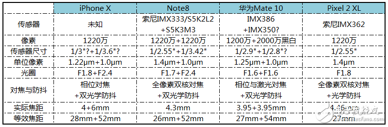 當(dāng)中,除了單攝的Pixel 2 XL,所有機(jī)器都有“雙光學(xué)防抖”;Note 8與Pixel 2 XL用著同級(jí)傳感器,這次的Note 8為N950F,傳感器為S5K2L2;Mate 10有最大的光圈,副攝是廣角的2000萬像素副攝,經(jīng)數(shù)碼裁切后插值,辨析力會(huì)比長(zhǎng)焦光學(xué);iPhone X主攝看似參數(shù)最弱,但蘋果表示傳感器色彩濾鏡和像素細(xì)節(jié)經(jīng)過改進(jìn),且是唯一支持4K@60fps的。