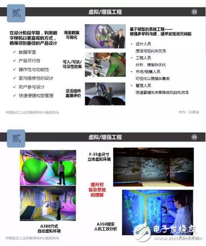 需要指出的是,VR/AR技術(shù)不僅僅是一個(gè)眼鏡或者屏幕,其背后是由一個(gè)強(qiáng)大的計(jì)算與通信系統(tǒng)以及數(shù)字線索支撐的。比如AR應(yīng)用一般包括背景認(rèn)知、數(shù)據(jù)集成和數(shù)據(jù)通信三個(gè)組成部分以及基于降階模型的數(shù)字化作業(yè)指導(dǎo)書;具備沉浸、交互和集成特征的“穴式自動(dòng)虛擬環(huán)境”(CAVE)背后是強(qiáng)大的高性能計(jì)算和顯示能力。雖然看起來(lái)很復(fù)雜,但是由于航空工業(yè)在實(shí)施MBSE的進(jìn)程中不斷積累和取得進(jìn)步,VR/AR技術(shù)的應(yīng)用在諸多環(huán)節(jié)上,比機(jī)器人和其它自動(dòng)化技術(shù)的應(yīng)用要節(jié)省不少人力物力和財(cái)力,具有很高的性價(jià)比。