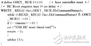 一旦主控制器復(fù)位了,HCD必須通過(guò)設(shè)置HcControl寄存器的HCFS字段為00B,以便使主控制器為RESET狀態(tài)。