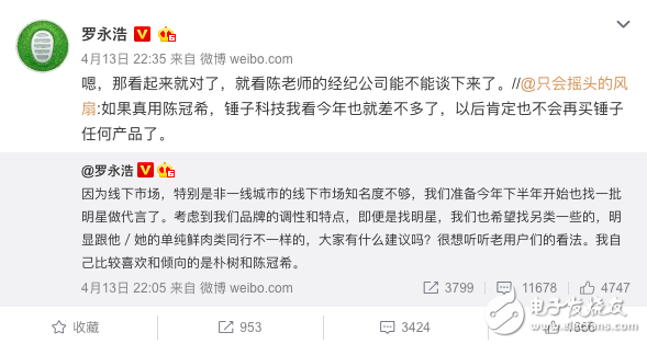 對此,羅永浩也很有個(gè)性的回復(fù)表示,“嗯,那看起來就對了,就看陳老師的經(jīng)紀(jì)公司能不能談下來了。”
