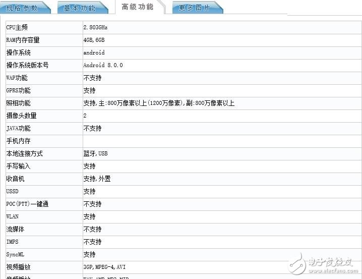 在硬件配置方面,該機搭載的是主頻為2.8GHz的八核處理器,配備4/6GB內(nèi)存,最高支持256GB存儲卡擴展,主攝像頭為12MP,前置攝像頭為8MP,電池容量為3000mAh,預(yù)裝安卓8.0系統(tǒng)。