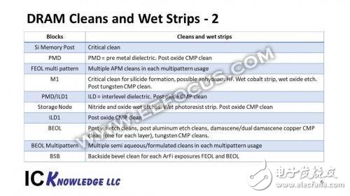 在第五張和第六張幻燈片中,我介紹了一些主要的DRAM工藝塊,并討論了DRAM工藝對清洗和濕條帶的需求。