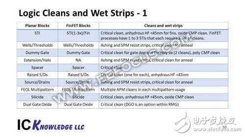 在第10張和第11張幻燈片中,我介紹了一些主要的邏輯工藝模塊,并討論了這些模塊對清洗和濕條帶的需求。