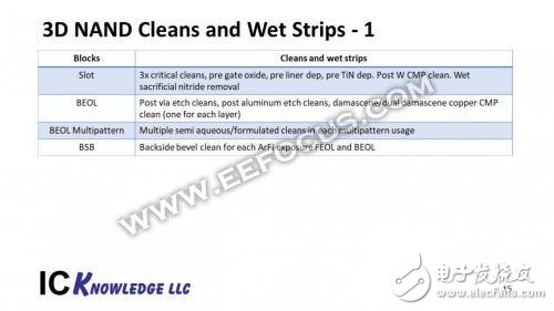 在第14張和第15張幻燈片中,我介紹了一些主要的3D NAND工藝模塊,并討論了這些模塊對清洗和濕條帶的需求。