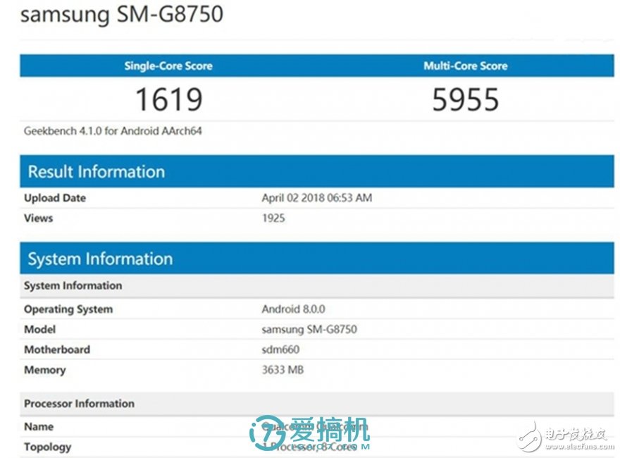 現(xiàn)在有一款型號為SM-G8750的三星機型出現(xiàn)在Geekbench跑分庫里,爆料顯示該機名為GalaxyDreamLite,也是中國特供機型。該機采用高通驍龍660處理器,預(yù)裝安卓8.0系統(tǒng),運行內(nèi)存為4GB。