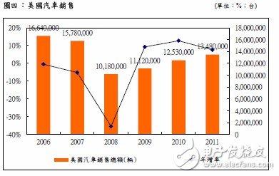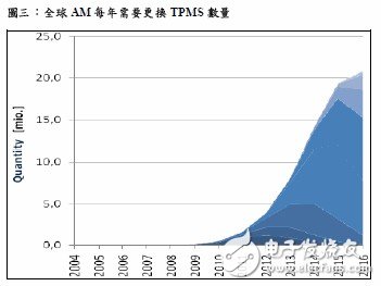 以胎壓監(jiān)測(cè)系統(tǒng)(Tire Pressure Monitoring Systems,TPMS)市場(chǎng)分析,美國(guó)是全球最早立法將TPMS列為標(biāo)準(zhǔn)配備的國(guó)家,2005年9月立法通過,2007年列為100%標(biāo)準(zhǔn)配備, 一般來(lái)說,胎壓傳感器壽命約5-10年,2012-2017年預(yù)估為更換潮高峰期,以北美地區(qū)過去新車銷售計(jì)算,每年平均約可銷售5,000萬(wàn)臺(tái)胎壓傳感器,估計(jì)美國(guó)地區(qū)OE市場(chǎng)胎壓傳感器,每年維持穩(wěn)定成長(zhǎng)。TPMS法規(guī)通常先針對(duì)新車市場(chǎng),強(qiáng)制規(guī)定列為標(biāo)準(zhǔn)配備的‘硬規(guī)則’,因此,每年OE市場(chǎng)TPMS需求和新車供給相關(guān)性高,目前法規(guī)對(duì)OE市場(chǎng)強(qiáng)制性高,相對(duì)AM未安裝TPMS只能利用‘潛規(guī)則’,要求輪胎維修廠遵守,由于目前美國(guó)對(duì)AM強(qiáng)制性仍不夠,對(duì)于粥多僧少的AM業(yè)者而言,仍需等待法規(guī)對(duì)AM的修法,另外,未來(lái)新車市場(chǎng)的換機(jī)需求,將是未來(lái)TPMS業(yè)者成長(zhǎng)所在。